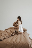 Комплект постільної білизни виготовлений із 100% натуральної бавовни з матовою текстурою для поціновувачів затишку, якості та мінімалістичного стилю, саме така тканина, яку ви бачили на атмосферних фото з Pinterest.